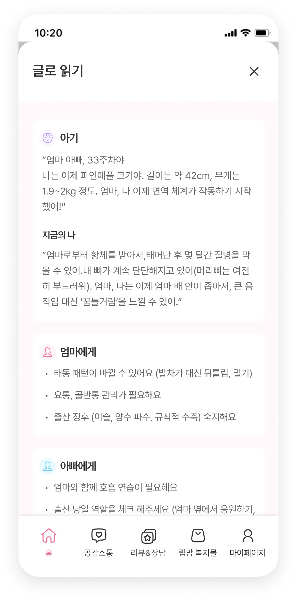 럽맘만의 AI기술을 적용한럽맘 온라인 산모수첩