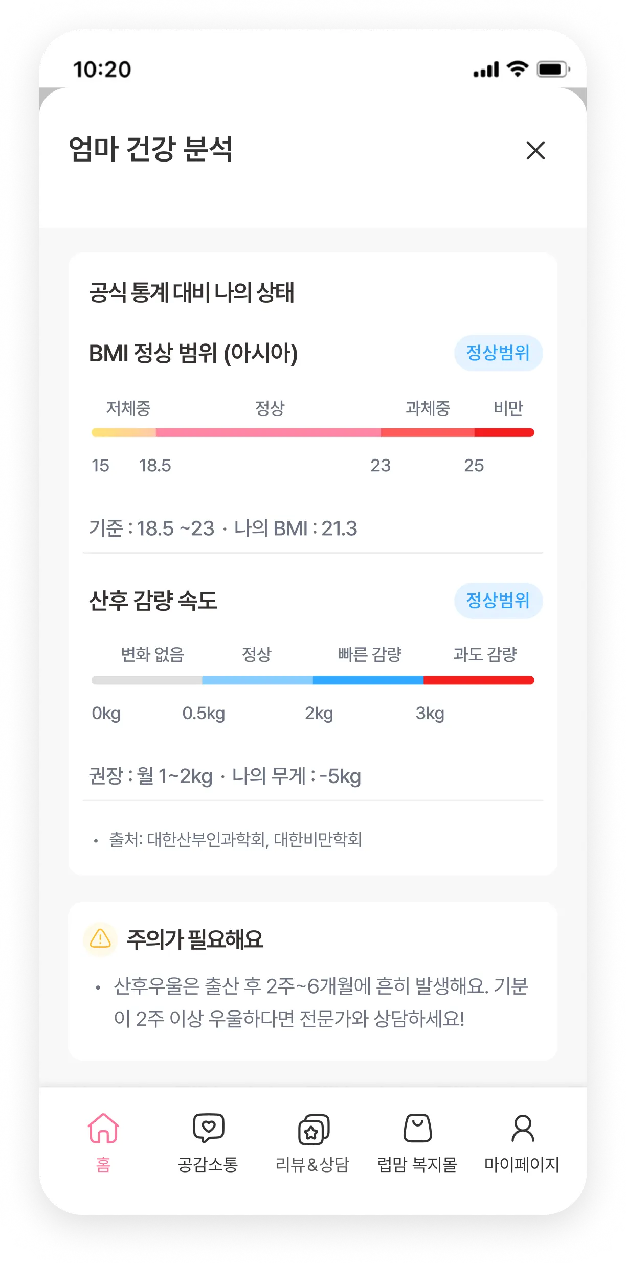 발달가이드 & 엄마 건강 분석