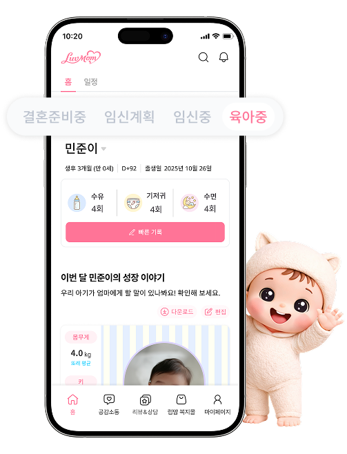 세상 모든 엄마를 응원합니다임신·출산·육아가 더 쉬워지도록 럽맘이 함께할게요
