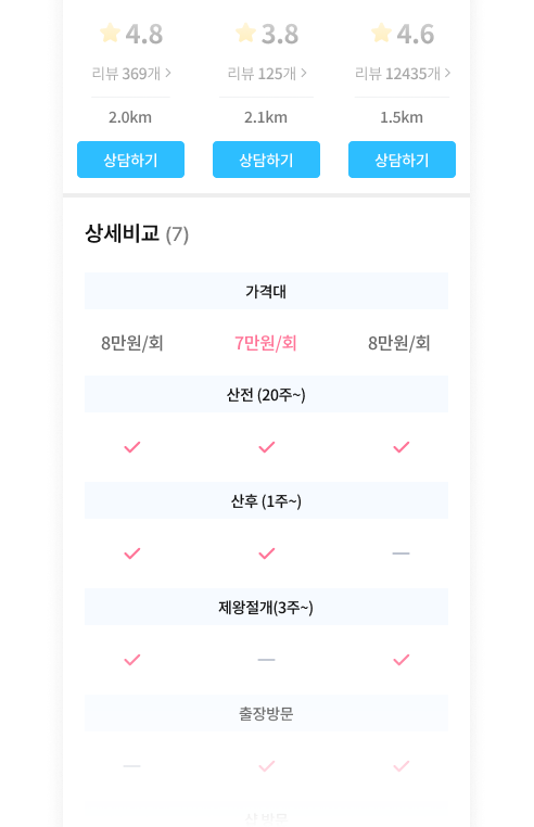 산부인과, 난임병원,산후조리원 등 리뷰와 랭킹, 비교 기능으로 선택이 쉬워져요